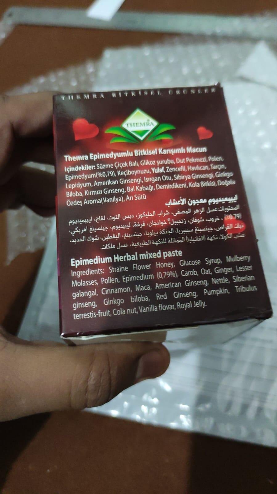 THEMRA EPIMEDYUMLU MACUN 240G. Enhance your marital life with this herbal honey! This all-natural honey is specifically designed for men and women, making it an ideal supplement to any couple's routine. This special herbal blend will instill excitement and happiness in your marriage, allowing you to create wonderful moments together. Made with just the best ingredients, this herbal honey is sure to boost intimacy and deepen your relationship. Don't wait any longer; try it today and see for yourself!Themra Epimedium Macun in Pakistan
