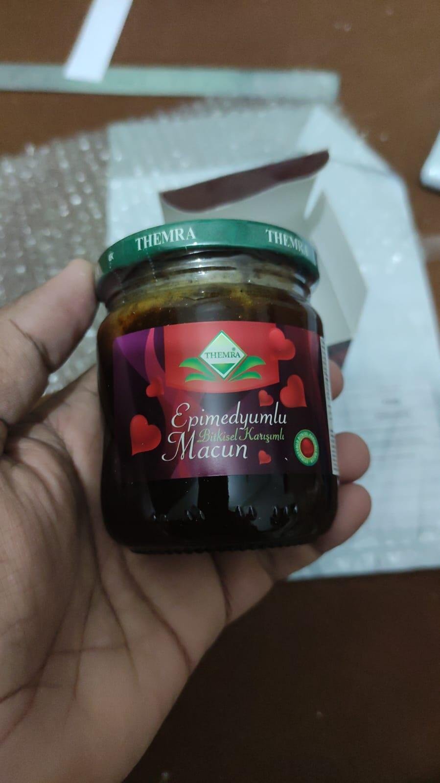 THEMRA EPIMEDYUMLU MACUN 240G. Enhance your marital life with this herbal honey! This all-natural honey is specifically designed for men and women, making it an ideal supplement to any couple's routine. This special herbal blend will instill excitement and happiness in your marriage, allowing you to create wonderful moments together. Made with just the best ingredients, this herbal honey is sure to boost intimacy and deepen your relationship. Don't wait any longer; try it today and see for yourself!Themra Epimedium Macun in Pakistan
